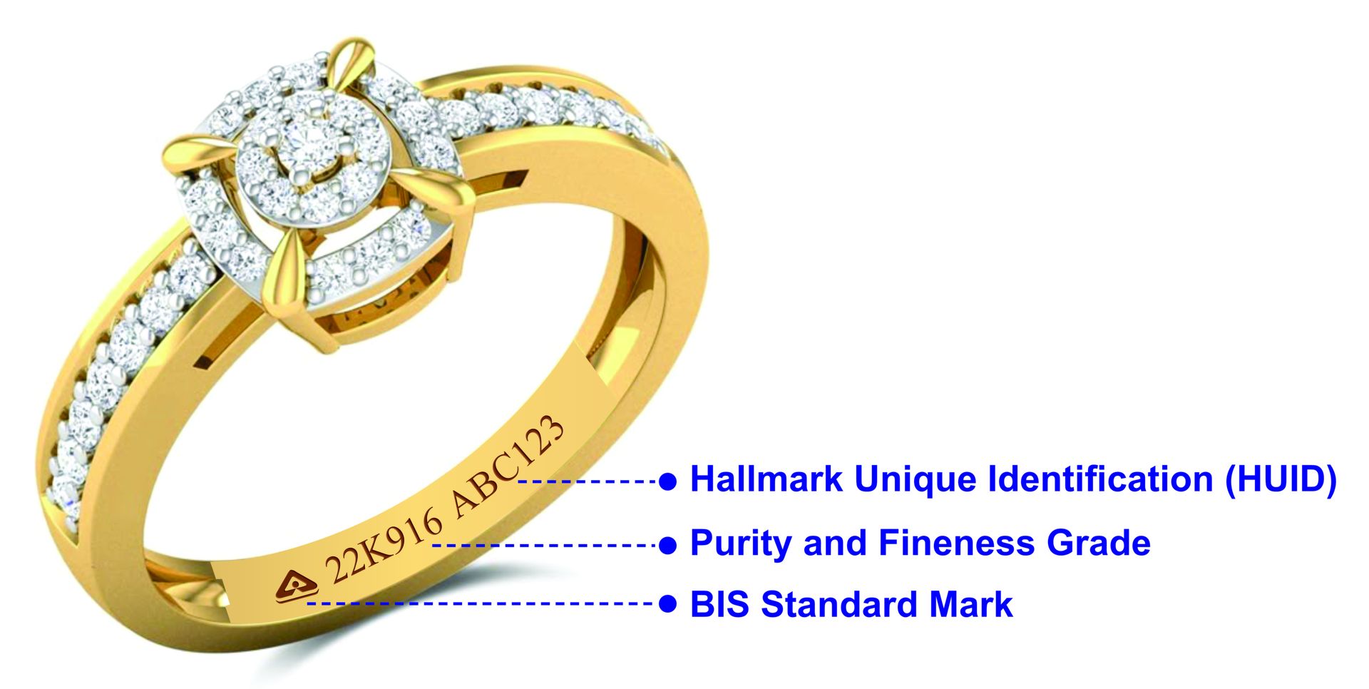 - When a jewelry piece is hallmarked, it means it has passed the purity test and carries official marks. These include the BIS logo, the purity mark (like 22K or 916), the jeweler’s code, the hallmarking center’s code, and a unique HUID number. This system protects customers from being cheated with impure or fake gold.